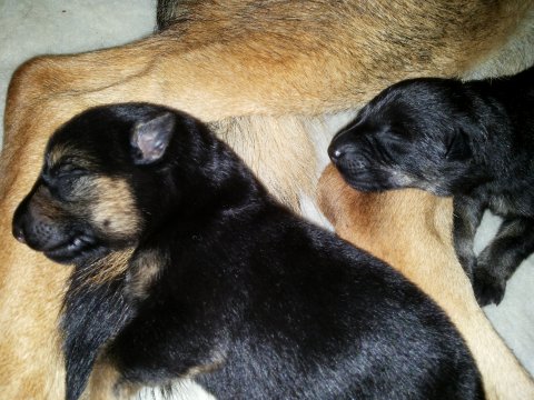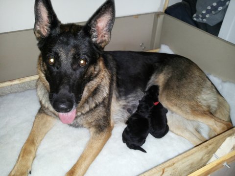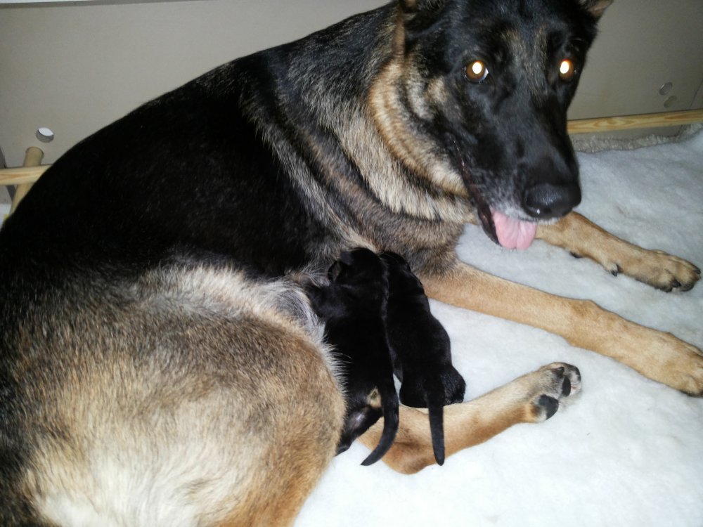 Det Amys første kuld, som forhåbentlig bliver arbejdsglad og sunde hunde.