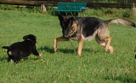 Amy er første "hjemmelavede" hund i kennelen. Hun er en dejlig arbejdsglad tæve, med IPO2, AK. Sundheden er i top, hun har selv HD:A og AD:0, med et indeks på 123. Alle hendes kuld søskende på Jessies side har HD: A(8 hunde) og B(3 hunde)
