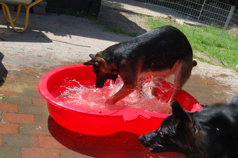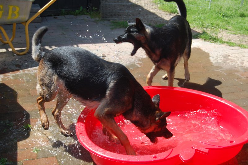 Videre... Amy kaster med vand og Signe prøver at holde området tørt...