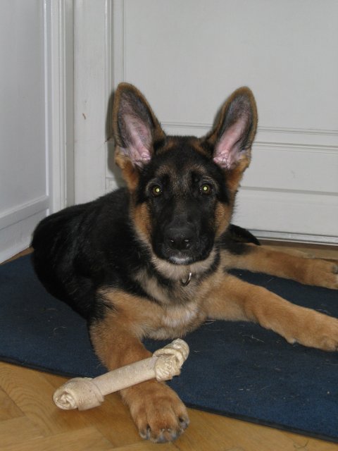 Han er meget kontaktsøgende, og fokuseret på mennesker. Han vil være en udpræget træningshund, der viser gode takter til lydighed.