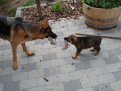Aika har alletiders aktive liv, med en masse træning og oplevelser. Aika har de første 3 år af hendes liv været udstationeret hos Thea til uddannelse til BHPIII, og avlskåres inden hun bliver sat i avlen. Aika har fået sin BHPIII i 2011. Thea har overtaget Aika i maj 2010, da hun selv har fået kennelnavn og gerne vil avle. Held og lykke til jer begge, det bliver spændende at følge jer fremover :o)